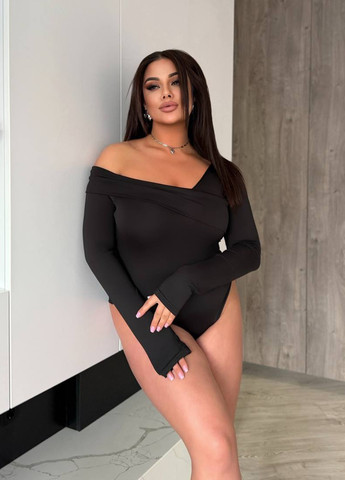 Елегантний боді з мікро дайвінгу. Асиметричний крій, глибоке декольте, довгий рукав підкреслюють фігуру. Делікатне прання до 30 градусів, не вимагає прасування.