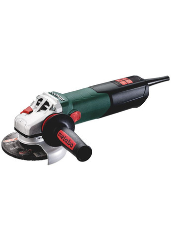 Кутова шліфувальна машина (болгарка) Metabo WEVA 15-125 Quick - це компактна кутова шліфувальна машина вдосконалена повнохвильовою електронікою Vario-Tacho-Constamatic, завдяки якій можна не тільки встановлювати і змінювати кількість обертів, а й автоматично підтримувати вже встановлені оберти при навантаженні. Використовується для шліфування, різання і зачистки поверхонь з металу, каменю, бетону. Болгарка має двигун Metabo Marathon з запатентованою системою захисту від пилу, збільшеним на 50% крутним моментом і зі збільшеною на 20% стійкістю до перевантажень. Metabo WEVA 15-125 Quick оснащена поліпшеною антивібраційною системою, яка зменшує вібрації на руки на 50% для більш тривалого терміну служби машини і практично подвоєного терміну експлуатації шліфувальних дисків. Також дана модель оснащена системою M-Quick для заміни дисків без інструментів натисканням на кнопку. Переваги для користувача: Metabo Marathon нового покоління дає до 20% переваги в витривалості і до 50% виграшу в віддаваній потужності в порівнянні з аналогічними за вагою та розмірами двигунів інших виробників. Електроніка регулювання обертів з підсистемою підтримки обертів під навантаженням Metabo Vario-Tacho-Constamatic (VTC) - не залежно від складності завдання, Ви завжди будете працювати на максимальній швидкості. Система Metabo Autobalancer - значно менше вібрації, диски ходять довше і Інтрументи менше розбивається в процесі роботи. У поєднанні з віброгасильною рукояткою Metabo Vibra-Tech ми отримуємо, на сьогоднішній день, один з найефективніших антивібраційних рішень в світі кутових шліфувальних машин компактного класу. Болгарка Metabo WEVA 15-125 Quick обладнана системами обмеження пускових струмів і плавного пуску, що дозволяє комфортно почати роботу. Нова високоефективна система охолодження - вентилятор як турбіна розганяє потік повітря до швидкості в 400 км/год. Повітрозабірники розташовані таким образом, що повністю виключає їх закривання руками в процесі роботи. Таким чином, інструмент завжди отримує достатньо охолодження, щоб виконувати важку роботу. Механічна муфта Metabo S-automatic надійно захищає користувача від раптового зворотного удару в разі заклинювання диска в матеріалі. Переставні двохпозиційна рукоятка і корпус реудуктора з можливістю повороту з кроком в 90 °. Metabo WEVA 15-125 Quick зручно працювати як правші так і лівшам. Крім цього, працюючи в вузьких або важкодоступних місцях, Ви можете вибрати оптимальне положення рукояток для того, щоб повністю котролювати інструмент в процесі роботи. Захист від повтроного включення. Нове покоління системи Metabo Quick - тепер затискну гайку можна відкрутити двома пальцями, всього за пару секунд і не докладаючи зайвих зусиль. Довговічні вугільні щітки з системою самовідключення по зносу. В комплект поставки входить Кутова шліфмашина Metabo WEVA 15-125 Quick, захисний кожух, опорний фланець, затискна гайка M-Quick, додаткова рукоятка VibraTech (MVT), картонна коробка Виробник має право змінювати комплектацію і конструкцію не вносячи змін до інструкції і без повідомлення.