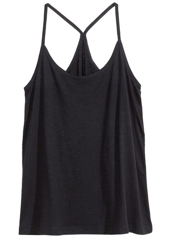 Простора майка із слабий трикотажу. У майки тонкі бретелі та спина-борцювання. Можливе пошкодження бірки