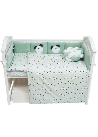 Постільний комплект Twins (Твінс) Panda - ідеальний постільний комплект для дитячого ліжечка. Набір створений з гіпоалергенних, дихаючих матеріалів – бавовняного велюру та 100% бавовни, що забезпечують комфортний і безпечний сон малюка. Основні переваги: безпечні матеріали – підходять для ніжної шкіри новонароджених практичність – легко прати, не втрачає форму стильний дизайн – ніжні кольори доповнять будь-який інтер’єр дитячої кімнати Характеристики У комплекті: подушка 40х60 см– м’яка та зручна ковдра 120х90 см – тепла та ніжна до шкіри підковдра 120х90 см – з якісної бавовни наволочка 40х60 см – приємна на дотик простирадло на резинці 120х60 см – ідеально фіксується, не сповзає бампер з об’ємною вишивкою “Панда” 240 см – з вбудованим шурхотливим елементом, що розвиває тактильні навички косичка-бортик 120 см – захищає від ударів і створює затишок Матеріал: бавовна 100% Догляд: рекомендується машинне прання у делікатному режимі при температурі 30–40°C Виробник: Twins, Україна.