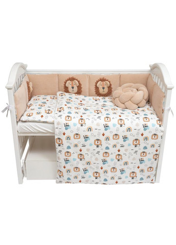 Колір Бежевий / Склад текстиль - велюр бавовняний, органічний поплін (бавовна 100%) наповнювач подушкт та ковдри - силіконізоване волокно наповнювач бортиків - синтепон 500