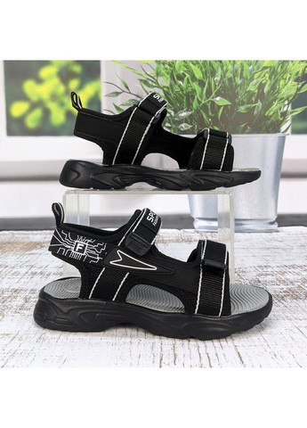 Дитячі чорні сандалі з сірий текстильні спортивний план. Має привабливий вигляд, оригінальний дизайн, відмінну зносостійкість. Верх зроблений із якісного текстилю. Підошва – піна. Висота підошви 1,5-2,5 см Устілка піна На нозі фіксується за допомогою липучок. Підійде на ногу середньої стандартної повноти. Для вибору свого розміру дивіться розмірну сітку на дану модель: 32р - 20,5 см 33р - 21 см 34р - 21,7 см 35р - 22,3 см 36р - 22,8 см 37р - 23,5 см