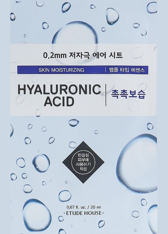 Опис Ультратонка маска для обличчя з гіалуроновою кислотою - Etude House Therapy Air Mask Hyaluronic Acid Гіалуронова кислота - одна з найважливіших складових структури шкіри. Цей елемент входить до складу клітин епідермісу і сполучних тканин. Маски з гіалуроновою кислотою вирізняються унікальними особливостями складати у водному середовищі молекулярні матриці, що дає їй змогу блокувати і утримувати значні обсяги води. За цією властивістю гіалуронова кислота дещо схожа на губку, яка всотує і утримує всередині себе рідину. Ультратонка маска для обличчя, випущена фахівцями корейського бренда Etude House, виготовлена ??з біоцелюлози і просякнута гіалуроновою кислотою. Засіб активізує регенерацію шкіри, підтримує її пружність і доставляє клітинам необхідні для їхньої нормальної життєдіяльності активні речовини. Спосіб застосування очистіть шкіру від макіяжу і забруднень, зволожте тоніком. Вийміть маску з упаковки і прикладіть до обличчя, рівномірно розправте, залиште на 10-20 хвилин. Після цього зніміть її, а решту есенції вмасуйте в шкіру. Склад water, dipropylene glycol, methylpropanediol, alcohol, glycerin, hydroxyethyl urea, biosaccharide gum-1, butylene glycol, 1,2-hexanediol, arginine, acrylates/c10-30 alkyl acrylate crosspolymer, allantoin, hydroxyethylcellulose, glycyrrhiza glabra (licorice) root extract, camellia sinensis leaf extract, zingiber officinale (ginger) root extract, coptis japonica root extract, dehydroacetic acid, sodium hyaluronate, disodium edta, dipotassium glycyrrhizate, caprylic/capric triglyceride, polyglyceryl-10 laurate, polyglyceryl-10 myristate, boswellia serrata gum, hydrogenated lecithin, citrus limon (lemon) fruit extract, rosmarinus officinalis (rosemary) leaf oil, beta-glucan, citrus paradisi (grapefruit) peel oil, geranium maculatum oil, melaleuca alternifolia (tea tree) leaf oil, ceramide np, phytosteryl/octyldodecyl lauroyl glutamate
