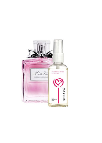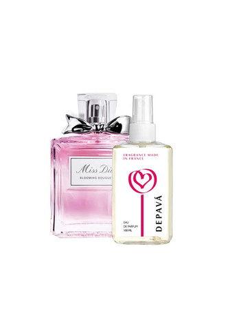 Відчуйте себе впевнено та вишукано кожного дня. Жіночі парфуми українського бренду DEPAVA підкреслять ваш стиль, створюючи ефект неперевершеної привабливості. Завдяки вишуканій композиції ароматів, вони стають невидимим атрибутом вашої індивідуальності, адже наші аромати створені саме для тих, хто цінує якість і стиль. Парфум DEPAVA (Christian Dior Miss Dior Blooming Bouquet) жіночий - Елегантна м'яка композиція аромату розкривається ніжними відтінками свіжого сицилійського мандарина, рожевої півонії, дамаської троянди, а також соковитих нот абрикоса та персика. Тип аромату: квіткові. Початкова нота: сицилійський мандарин. Серцева нота: абрикос, дамаська троянда, персик, півонія. Кінцева нота: білий мускус.