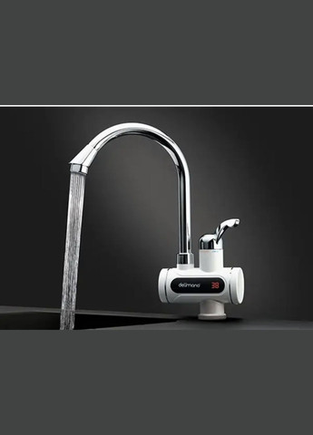 Проточний кран-водонагрівач Delimano з душем лійкою шлангом та LCD екраном допоможе вирішити проблему з перебоями гарячої води, а також вирішити проблему відсутності гарячого водопостачання у найкоротші терміни, адже не завжди є можливість підключити накопичувальний бойлер або газовий водонагрівач (колонку). Потрібно тільки встановити кран на умивальник, під'єднати воду звичайним гнучким шлангом з 15 різьбленням (1/2 дюйми) і включити вилку в розетку. Вода нагрівається миттєво, а на екрані з'являється температура води. Також можна скористатися холодною водою, повернувши ручку крана в інший бік. Мінімізація використання електроенергії, адже вода не підігрівається постійно, а лише за необхідності. Економія на витраті води, адже одразу використовуєте теплу воду у потрібній кількості. Не вимагає багато місця, що, безперечно, оцінять власники малогабаритних приміщень, адже часто складно знайти місце для встановлення бойлера. Швидке нагрівання води буквально за секунди. Температура води помітна на екрані, що дуже зручно при використанні. Дуже проста і швидка установка, яка не вимагає залучення висококваліфікованих спеціалістів Швидке нагрівання. Вода стає теплою буквально за секунди. Додаткові характеристики: Температура води, що нагрівається: до 60°C Довжина електричного шнура: 1 метр Розмір нагрівальної колби: довжина 16,5 см, діаметр 6,5 см Висота крана – 34 см Підключення бічне