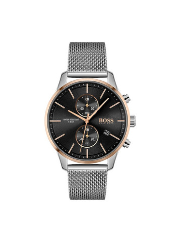 Чоловічий наручний годинник 1513805 Hugo Boss з колекції Associate – це стильний годинник, який здатний підкреслювати вишуканий смак свого власника. Чорний колір циферблата із вставками з рожевого золота, надає годинникам елегантного вигляду, а браслет із міланського плетіння стане відмінним акцентом на Вашому зап'ясті. Розмір годинника становить 42 мм, який ідеально підходить для середнього розміру зап'ястя. Додаткові функції годинника включають відображення дати та хронограф, що робить їх не тільки привабливими, але і функціональними. Годинник ідеально підходить для щоденного використання і гармонійно доповнить Ваш образ.