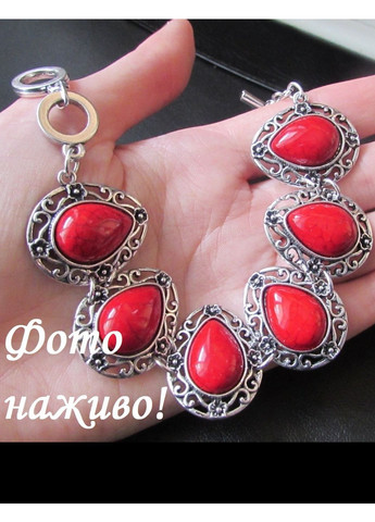 Червоний браслет вінтаж стиль з коралом - красива прикраса для вас! Довжина - 18-20 см, може регулюватися тоглом, розмір ланок - 2,9х2,3 см, вставки - 1,8х1,3 см Склад: біжутерний сплав, сріблясте напилення, говліт під корал.