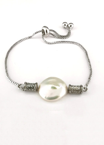 Регульований бегунком браслет. Прикрашений бароковою натуральної перлиною розмір приблизно 1.5 см. Розмір браслета максимально 20 см.