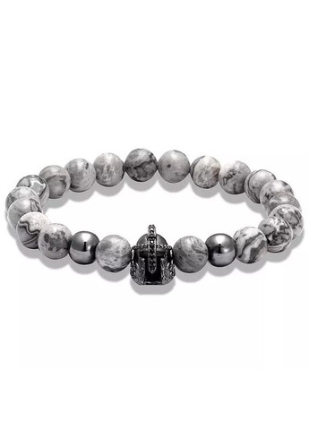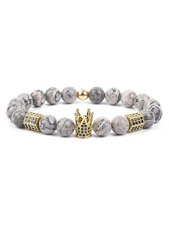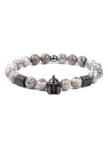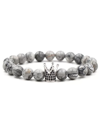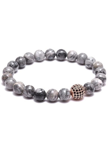 Матеріал: камінь Яшма. Матеріал вставок: латунь з родуванням та мікроінкрустацією цирконами. Сірий: колір. Діаметр каменю: 8 мм. Основа: силіконова еластична нитка, тягнеться, надійна. Модель: унісекс. Упаковка: ідеально упакований у фірмову коробочку, відмінно підійде як подарунок. Властивості: Яшма - джерело доброї енергії. Вироби із цього каменю не можуть нашкодити його господареві. Усі предмети та ювелірні прикраси з яшми діють як обереги. Вони приносять щастя та мир у будинок.