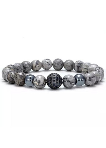 Матеріал: камінь Яшма та Гематит. Матеріал вставок: латунь з родіюванням та мікроінкрустацією цирконами. Колір: сірий. Діаметр каменю: 8 мм. Основа: силіконова еластична нитка, тягнеться, надійна! Модель: унісекс. Упаковка: Яшма - джерело доброї енергії. Вироби із цього каменю не можуть нашкодити його господареві. Усі предмети та ювелірні прикраси з яшми діють як обереги. Вони приносять щастя та мир у будинок.