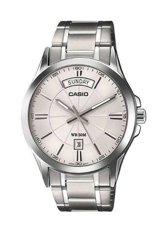 Модель MTP-1381 - це годинник від Casio з класичним дизайном, призначений для чоловіків. Він має сріблястий корпус з латуні і мінеральне скло, що забезпечує надійну захист від подряпин і ударів. Ця модель оснащена аналоговим циферблатом з чіткими годинниковими стрілками, що полегшує читання часу. MTP-1381 також має відображену дати на циферблаті, що дозволяє швидко і зручно слідкувати за поточною датою також є індикація дня неділі. Годинник має кварцовий механізм, що забезпечує точний хід годинника. Він має вологозахист 50WR. MTP-1381 має сталевий браслет, який забезпечує зручне і надійне кріплення до зап'ястя, який легко регулюється індивідуально під руку. Загалом, MTP-1381 - це стильний і надійний годинник, який підійде для чоловіків, які цінують класичний дизайн і точний хід годинника. Він поєднує в собі функціональність, елегантність і комфорт в щоденному використанні.