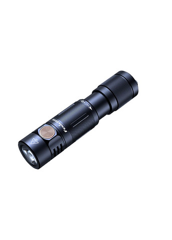 Модель Fenix E05R є компактним і досить легким ліхтарем у формі мінібрелока. Одна з цікавих особливостей моделей — корпус ліхтарика йде в трьох різних відтінках. А саме — у чорному, зеленому та бронзовому кольорах. Ліхтар не тільки виконує декоративну функцію, але ще й гарантує Користувачеві найбільший світловий потік у 400 люменів. Водночас відстань дії променя досягає 64 метрів. Для роботи моделі використовується світлодіод Cree XP-G2 S3, біле освітлення. Живлення здійснюється від вбудованого акумулятора Li-polymer ємністю 320 мА·год. Для заряджання тут слугує прихований microUSB-порт. Також передбачена високоефективна лінза з повним відбивним покриттям. Для увімкнення та вимкнення приладу, а також для вибору режиму є металева кнопка. Чотири різні режими роботи ліхтаря. Керування ліхтарем Для увімкнення або вимкнення моделі-брелока потрібно затиснути та утримати бічну кнопку половину секунди. Для вибору режиму за ввімкненого ліхтаря один раз натисніть бічний перемикач. У такий спосіб ви зможете активувати режим: мінімальний → середній → максимальний. Якщо ж потрібно використовувати моментальний турбо, для цього необхідно натиснути й потримати бічну кнопку 1,2 секунди, якщо відпустити, то ви повернетеся в мінімальний режим. Щоб заблокувати модель, треба за вимкненого її стану двічі натиснути кнопку впродовж пів секунди. Ліхтар блимає двічі в мінімальному режимі, демонструючи, що він заблокований. Щоб розблокувати, двічі натисніть кнопку впродовж пів секунди-ліхтар розблокується й увімкнеться в мінімальному режимі. Режим Турбо. Тут можлива найбільша яскравість освітлення, 400 люменів. Далекобійність променя становить 64 метри. Інтенсивність світлового потоку досягає 1046 кандел. Максимальний. Світловий потік — 150 люменів, працює впродовж 55 хвилин, відстань дії променя — 40 метрів. Інтенсивність потоку водночас досягає 412 кандел. Средний. Яскравість освітлення становить 25 люменів. Тривалість світіння в цьому режимі — п'ять годин. Далекобійність променя становить 17 метрів. Інтенсивність потоку — 72 кандели. Мінімальний. Яскравість освітлення становить три люмени. Час роботи — 30 годин. Світить на дистанції 8 метрів. Інтенсивність освітлення становить 15 кандел. * Необхідно згадати, що зазначені параметри роботи моделі були отримані під час лабораторних дослідів. Для цього використовували вбудований акумулятор Li-polymer 320 мА·год, температура повітря досягала 21 ± 3 °C і вологість 50% — 80%. Реальні показники роботи ліхтаря можуть бути іншими залежно від того, які умови довкілля й елементи живлення. Корпус моделі типово має захист від перегрівання. Під час світіння ліхтар акумулює в собі багато теплової енергії, а нагрівання може перешкоджати нормальній роботі. Тому в разі досягнення температури понад 60 градусів автоматично знижується яскравість моделі. Коли температура знизиться за межі 60 градусів, можна знову повернутися до максимального режиму. Корпус ліхтаря виготовлений із міцного алюмінію A6061-T6. Покриття корпусу: преміальне жорстке анодування HAIII, стійке до абразивних впливів. Габарити ліхтаря становлять 68 х 15,3 х 15 міліметрів. Вага становить 24 грами. Ліхтар запросто витримує падіння з висоти одного метра. Стандарт захисту від пилу та вологи — IP68. Характеристика: невеликий ліхтар-брелок для щоденного застосування; колір корпусу: чорний, зелен