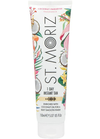 Бронзатор із легким ефектом засмаги St Moriz Shimmer 1 Day Tan Coconut Paradise – ефективний засіб на основі водостійкої формули. Бронзатор забезпечить одноденну засмагу з ефектом сяйва і стане відмінним доповненням літнього образу. Безпечний склад крему підходить для всіх типів шкіри, зокрема чутливої. Легка кремова текстура рівномірно лягає на шкіру, швидко вбирається без слідів, плям і неакуратних розводів. Наприкінці дня бронзатор легко і швидко змивається. Крім засмаги засіб виконує і доглядові властивості, зволожуючи і пом'якшуючи шкіру. Переваги бронзатора з легким ефектом засмаги St Moriz Shimmer 1 Day Tan Coconut Paradise: Акуратна засмага на основі водостійкої формули Дарує одноденну засмагу з ефектом сяйва Підходить для всіх типів шкіри, зокрема чутливої Швидко поглинається без слідів, плям і неакуратних розводів Зволожує і пом'якшує шкіру Приємний аромат кокоса Спосіб застосування: бронзатор наноситься на шкіру за допомогою спеціальної рукавички-аплікатора. Перед нанесенням необхідно нанести засіб на рукавичку і акуратно, рівномірно розподілити по шкірі. Засмага проявляється відразу ж. Наприкінці дня легко змивається в душі. Склад: Aqua (Water), Glycerin, Polyacrylamide, PEG-7 Glyceryl Cocoate, Cocos Nucifera (Coconut) Oil, Acrylates/C10-30 alkyl acrylate crosspolymer, C13-14 Isoparaffin, Laureth-7, Phenoxyethanol, Ethylhexylglycerin, PVP, Potassium hydroxide, Mica, Parfum (Fragrance), Coumarin, CI 77891 (Titanium dioxide), CI 77491 (Iron Oxides), CI 16035 (Red 40), CI 19140 (Yellow 5), CI 42090 (Blue 1).