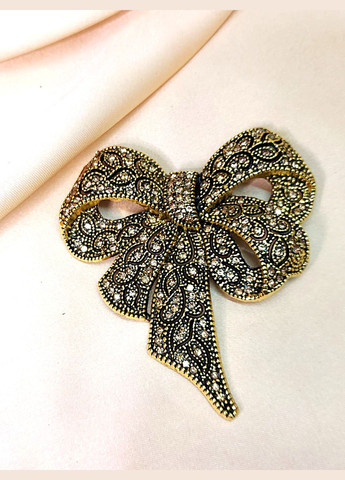 Брошка - шпилька Витончена стильна шпилька сучасна та універсальна за своїм виконанням Акцентна модель у формі банта довжина 6.5 см шириною 2см Прикрашена стразами основа – біжутерний сплав золотистого кольору