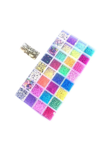 Набір для створення прикрас з бісеру Через велику різноманітність комбінацій набору, деякі кольори можуть відрізнятись! Набір для створення прикрас — це чудовий подарунок для кожної дитини! До розвивального набору для творчості та рукоділля входять дуже красиві намистини різного кольору, форми та величини, м'яка еластична волосінь для браслетів, форма для обідків. Все це розташовується в зручному органайзері, який можна брати із собою. Він допоможе юній модниці упорядкувати лад під час створення прикрас. З яскравих намистин юна модниця самостійно зможе зробити безліч різноманітних прикрас. Різноманітність ігрового набору вразить кожну дівчинку! Набір для виготовлення прикрас своїми руками підійде і як спільна творчість мама +очка з ранніх років, і як окремий прояв творчості для леді, що підростає. За допомогою цього набору ви зможете створювати різноманітні прикраси, як-от обідки, намиста та браслети. Бісероплетіння допомагає розвивати моторику руки та творчі навички. Цей дитячий набір для творчості ідеально підходить для розваги та розробки фантазійного світу вашої дитини. Отримайте безліч затишних вечорів, створюючи красиві дизайни з намистин. Спробуйте зробити нескінченну кількість прикрас із бісером і освоїти мистецтво плетіння браслетів із намистин. Набір бісеру чудово підійде для рукоділля і створення прикрас на шию, пальці, як-от: чокер, ланцюжок, кільце, підвіска, кулон, шпилька, брошка, браслети, кольє! Для цього знадобиться тільки бісер, волосінь... Також ви можете сплести з нього цікаві картини, сувеніри або невеликі фігурки — зайця, ромашку, квітка або прикрасити написами будь-які м'які іграшки, джинси, одяг, маски та створити неповторний образ! До прикрас можна додати всілякі камені, сріблясті, золоті намистини, кубики з літерами, стрази. Плетіння з бісеру покращує розвиток дрібної моторики в дітей і захоплює дорослих! Ви можете подарувати друзям і родичам, дививши їх таким сюрпризом! Відправимо по всій Україні оптом та в роздріб
