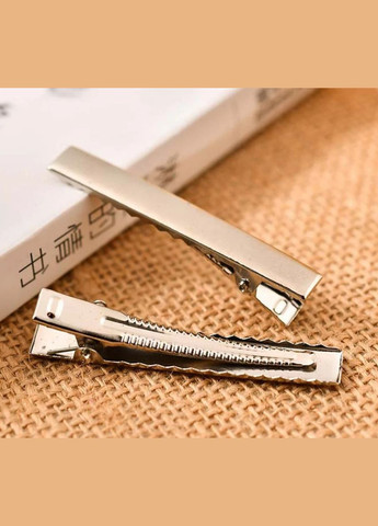 Заколка для волосся з затискачем "крокодильчик" ("качечка"). Для фіксації зачісок та виготовлення прикрас для волосся ручної роботи. Довжина - 5,5 см. Матеріал: металевий сплав. Ціна вказана за 1 штуку. Металевий затискач для волосся "крокодил" ("качечка") — це універсальна заколка для фіксації пасом та створення зачісок. Виріб має міцний металевий корпус і представлений у різній довжині, що дозволяє обрати оптимальний розмір для будь-якого типу волосся. Затискачі бувають з одним або двома вусиками, що впливає на силу фіксації та зручність у використанні. Деякі моделі оформлені репсовою стрічкою різних кольорів. Використання: Металеві затискачі "крокодильчики" можна використовувати як самостійні декоративні фіксуючі елементи зачісок, та і в якості основи для створення прикрас ручної роботи: дитячих заколок, святкових аксесуарів для волосся або брошок. Такі заколки легко декоруються фетром, штучними квітами, бісером, стрічками чи елементами з полімерної глини. Це зручна та стильна основа для створення елегантних та стильних аксесуарів.