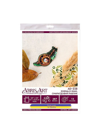 Набір для вишивання бісером прикраси на натуральному художньому холсті "Смарагдовий равлик " - це чудовий набір для вишивки бісером для створення прикрас (брошей) від Абрис Арт з артикулом AD-238, який Ви можете купити прямо зараз та отримати доставку за лічені дні! Цей повний зручний набор подарує незабутні години під час створення справжнього рукодільного шедевру! Придбати таку річ готовою – неможливо! Якісні матеріали - натуральний холст (полотно) з яскравим високоточним друком зображення-схеми, найкращій у світі бісер Preciosa Ornela (Чехія), бісерні голки з Японії та детальна інструкція - кожен зможе створити неперевершену прикрасу бісером, зроблену власноруч. Вишивка бісером відома ще з давніх-давен. З продавніх часів умілиці захоплювали своєю чудовою майстерністю вишивання, спочатку перлинами, а потім з середині 17 століття — кольоровим скляним бісером. Набір для вишивання бісером прикраси на натуральному художньому холсті "Смарагдовий равлик " привнесе додаткову нотку душевного тепла та затишку до Вашої оселі, адже ширина її складає: 61 міліметрів, а висота: 59 міліметрів, а кількість бісеру (намистин) 387 шт. Кількість кольорів: 13 Кількість бісеру (намистин, бусин): 387 шт. Ширина прикраси: 61 мм. Висота прикраси: 59 мм.