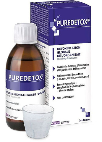 Очищення всього організму. Вплив на всі 5 органів видільної системи, що виводять токсини (печінка, нирки, кишечник, легені, шкіра). Сприяє усуненню всіх видів токсинів та очищенню організму. Комплекс із детоксикуючих 10 рослин + березовий сік + пребіотичні волокна FIBERGUM™. Курс 10 днів. Без консервантів, без цукру, без підсолоджувача. Переваги препарату:П'юрдетокс дозволяє дренувати та очистити 5 органів, що виводять токсини та накопичені відходи метаболізму, які можуть порушувати нормальну роботу організму. Таким чином, детоксикація допомагає очистити тіло в цілому. Для кого? При кожній зміні сезону, в ідеалі навесні та восени.Бажаючим провести детоксикаційну терапію.Рясне, жирне / занадто солодке харчування.До та після дієти або значної втрати ваги.Вплив токсинів (забруднення, пестициди, важкі метали, консерванти тощо).Після медикаментозного лікування.Після хвороби (грип, шлунково-кишковий тракт тощо). Видільна система - це фільтруючі органи, що спеціалізуються на видаленні токсинів і шлаків з нашого тіла за допомогою видалення рідини. Їх 5: печінка, кишечник, нирки, легені та шкіра. Печінка - це орган, роль якого, крім іншого, полягає в тому, щоб фільтрувати кров, нейтралізувати токсини, що постійно переносяться нею, і виводити їх через жовч. Кишечник (тонкий і товстий кишечник) виконує фундаментальну функцію видалення, тому що він збирає всі відходи з інших органів і виводить їх у вигляді стільця. Нирки фільтрують кров і видаляють розведені продукти життєдіяльності із сечею. Дихальні шляхи видаляють відходи та токсини у вигляді газів. Шкіра, самостійний орган, виводить шлаки і токсини через піт завдяки потовим залозам, а також у вигляді шкірного сала завдяки сальним залозам. Наш нинішній спосіб життя, наше повсякденне середовище (забруднення, важкі метали, консерванти тощо), а також інфекції та прийом ліків можуть бути причиною перевтоми імунної системи та насичення метаболічних відходів та токсинів в організмі. Тому вони більше не виводяться належним чином і можуть призводити до негативних наслідків для організму, зокрема: - Розлади травлення, що повторюються (здуття живота, гази, закрепи, повільне і утруднене травлення...)- Знижений тонус та брак енергії- Втома- Головний біль- Тьмяний колір обличчя, поганий зовнішній вигляд- Часті інфекції Детоксикація дозволяє очистити своє тіло і, таким чином, зберегти його здоров'я завдяки чисельним корисним ефектам для організму: • Відновлення енергії та життєвих сил,• Покращення кольору обличчя,• Підвищення імунітету та фізичної витривалості,• Поліпшення травлення. Отже, коли робити детокс? Сезонна зміна (весна / осінь) – ідеальний час для детоксикації вашого тіла. Але детокс рекомендується також у інших ситуаціях:? Рясне, жирне / занадто солодке харчування? Після дієти або значної втрати ваги? Вплив токсинів (забруднення, пестициди, важкі метали, консерванти тощо)? Після медикаментозного лікування? Після хвороби (грип, шлунково-кишковий тракт тощо) PUREDETOX® - це детоксикуючий концентрат для розведення, на основі березового соку, пребіотичних волокон та синергетичного комплексу з 10 рослин, призначених для впливу на 5 імунних органів: печінку, кишечник, нирки, легені та шкіру. Повна формула дозволяє повністю усунути різні типи токсинів: - Березовий сік, багатий на мінерали та мікроелементи, сти