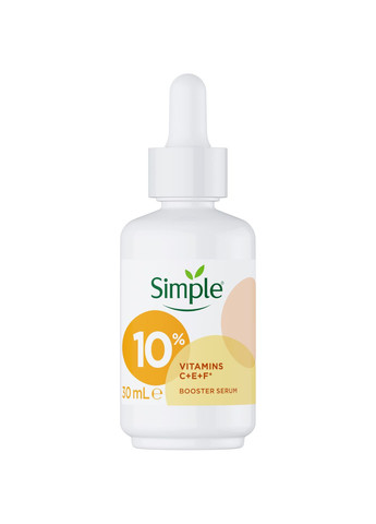 Миттєво поліпшіть зовнішній вигляд шкіри з допомогою веганської сироватки-бустер британського бренду Simple! Засіб представлений у флаконі з піпеткою для зручного використання. Переваги продукту На 95 % складається із натуральних компонентів. Підходить для всіх типів шкіри, навіть для чутливої. Випробуваний дерматологами. Продукт не тестували на тваринах, він схвалений організацією PETA. Засіб не містить ароматизаторів, штучних барвників, спирту, агресивних хімікатів, мінеральних масел. Як діє? Сироватка має в складі високоефективні компоненти серед яких вітаміни C, E та F у загальній концентрації 10 %. Вона не спричиняє подразнень, живить, зволожує, зміцнює та освітлює шкіру. Б’юті-поради Для усунення макіяжу використовуйте збагачену вітамінами міцелярну воду Simple, а для миттєвого усунення тьмяності — експрес-блиск на основі глини цього самого бренду.