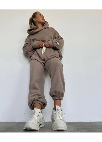 Ультратеплий жіночий костюм з трендовою імітацією футболки — стильний варіант на кожен день. Кофта має вільний фасон, який створює ефект багатошаровості. Штани з високою посадкою, еластичним поясом і утепленням зсередини.