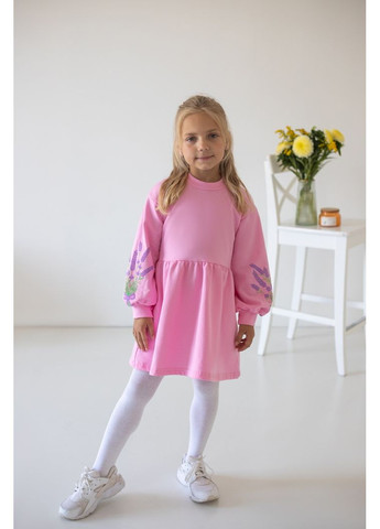 Зручна, тепла сукня для дівчинки. Сукня виконана з м'якого яскравого та якісного трикотажного полотна "Футер з начосом" та прикрашена накатом. Футер с начосом - трикотажне полотно, виготовлене з 100% бавовни. Полотно дає усадку при пранні. Підходить для повсякденного використання в прохолодну пору року. Полотно: футер з начосом. Склад: 100% бавовна. Правила догляду: вироби перуть в режимі "ручного" або "делікатного" прання при температурі до 30°С.