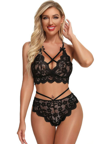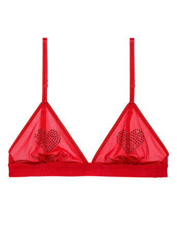Бюстгальтер з трикутними чашечками на бретельках-ланцюжках спереду і ззаду, що регулюються, застібається спереду на один гачок.
