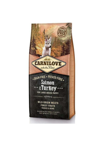 Корм класу холістік має приголомшливі смакові якості та оригінальні, тільки свіжі інгредієнти. Carnilove (Карнілав) Dog Puppy Large Breed Salmon & Turkey з лососем та індичкою сухий корм для цуценят і юніорів великих порід у віці від 3 до 30 місяців. Основним джерелом білка є м'ясо лосося, яке багате жирними кислотами, що регулюють рівень холестерину в крові та м'ясо індички, що є дієтичним і живильною основою корму. Carnilove (Карнілав) це відмінне поєднання збалансованості, поживності, якості та смаку. У нових кормах Carnilove (Карнілав) замість картоплі до складу входять інгредієнти з низьким вмістом глюкози: жовтий горох та тапіока. Корм насичений корисними інгредієнтами: індійський подорожник, корінь цикорію, екстракт чебрецю, розмарину і лісових ягід, багатий жирними кислотами Омега-3 і Омега 6, що містяться в лососевому маслі. Переваги корму Carnilove Salmon & Turkey For Large Breed Puppy: 70% - високоякісне м'ясо диких тварин 30% - лісові ягоди, овочі та корисні рослини Формування скелета, хрящів і зубів молодих собак: оптимальне співвідношення кальцію і фосфору, високий вміст глюкозоамину і хондроїтину Збалансоване зростання: підвищений вміст тваринних протеїнів Активність мозку, правильний розвиток нервової системи, стан шкіри і шерсті: підвищений вміст Омега-3 та Омега-6 жирних кислот (масло лосося) і їх ідеальне співвідношення з органічним цинком і міддю Підтримка імунітету та охорона здоров'я MOS (маннаноолігосахаріди): піклуються про здоров'я травного тракту і зменшують кількість патогеннів мікрофлори в кишківнику Підтримка кишкової мікрофлори FOS (фруктоолігосахаріди): покращують кишкову мікрофлору, підтримують її здоров'я і функціонування Не містить слабо засвоюванні джерела протеїну: сою, яловичину і свинину Не містить ГМО Склад: борошно з лосося (25%), борошно з індички (20%), жовтий горох (18%), курячий жир (консервований токоферолами, джерелом вітаміну Е, 9%), цільні яйця (5%), гідролізований курячий протеїн (5%), крохмаль з тапіоки (5%), яблука (3%), куряча печінка (3%), риб'ячий жир лососевий (2%), морква (1%), лляне насіння (1%), нут (1%), гідролізовані панцири ракоподібних (джерело глюкозаміну, 0,031%), екстракт хряща (джерело хондроїтину, 0,019%), пивні дріжджі (джерело маннан-олігосахаридів, 0,018%), корінь цикорію (джерело фрукто-олігосахаридів, 0,012%), юка Шидигера (0,011%), водорості (0,01%), індійський подорожник (0,01%), чебрець (0,01%), розмарин (0,01%), материнка (0,01%), журавлина (0,0008%), лохина (0,0008%), малина (0,0008%). Вітаміни і мікроелементи: вітамін A - 24 000 МО, вітамін D3 посилання - 1 600 МО, вітамін E (α-токоферол) - 500 мг, цинк - 100 мг, залізо - 85 мг, марганець - 40 мг, йод - 0,75 мг, мідь - 18 мг, селен - 0,28 мг. Аналітичні інгредієнти (в 1 кг): сирий протеїн - 38,0% сирий жир - 16,0% сира зола - 7,8% сира клітковина - 2,5% вологість - 10,0% кальцій - 1,3% фосфор - 1,0% Омега 3 - 0,68% Омега 6 - 2,2% Енергетична цінність: 3 800 Ккал / кг Рекомендований добовий раціон: Вік цуценяти, місяців Вага дорослої собаки, кг 25 30 40 50 60 70 80 90 < 1 - 3 Корм для цуценят 3 - 4 230 250 270 290 330 340 390 400 4 - 6 260 290 360 400 500 540 600 650 6 - 12 250 300 370 440 500 560 620 680 12 - 18 240 290 360 430 490 560 620 680 18 - 24 230 280 350 410 480 550 610 660 24 - 30 Adult Large Breed 410 470 530 580 640 більше ніж 30 Adult Large Breed Корм давати сухим або злегка зволоженим. Зберігання: зберігати при температурі від 0 до +25 С і відносній вологості повітря не більше 80%. Після розтину пакет з кормом необхідно щільно закривати.