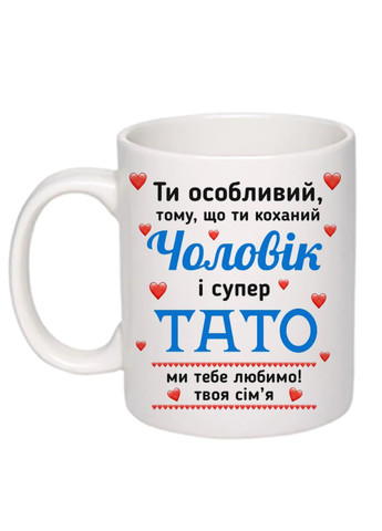 Чашка з друком "Ти особливий чоловік і супер тато". Ім'я можна змінювати за бажанням замовника! Колір, мова, напис, зображення можуть бути змінені за бажанням замовника (ціну уточнюйте у менеджера). Друкуйте принти будь-якої складності, логотипи, фото, написи на білих чашках. Надійна упаковка – гарантія безпечного транспортування! В наявності кольори: чорний, синій, блакитний, салатовий, помаранчевий, рожевий, червоний, жовтий (див. у списку кольорів та їх різновиди) Колір білий. Напис може бути будь-якою мовою. Сублімаційна чашка із принтом (зображення). Подарунок у вигляді чашки завжди дуже приємно та зручно! Подарунок у вигляді чашки - це не нововведення, а скоріше популярний і поширений предмет для офісу, будинку. Причини популярності подібного презенту: практичність, невисока ціна і, найголовніше, чашка з фото чи побажанням радуватиме її власника щодня, заряджаючи позитивом та радісним настроєм. Вашим близьким людям завжди буде приємно вдома чи на роботі попити чогось смачного з чашки з гарним фото чи оригінальним написом, який їм подарувала рідна чи близька людина. Сублімаційна технологія дає фотоякість та гарантує довговічність та яскравість фотографії. Це чудовий подарунок на будь-яке свято! Матеріал: кераміка Діаметр: 80мм Висота: 95мм Об'єм: 330мл НЕ МОЖНА мити посуд у посудомийній машині, тільки вручну. Малюнок та мову можуть бути змінені за бажанням замовника. Нема дизайну – наші дизайнери допоможуть вам! Працюємо з рекламними агенціями, за дуже вигідними цінами, індивідуальний підхід. Можливий варіант співробітництва в системі дропшипінг. Чому ми? У нас є власне виробництво, наші менеджери та дизайнери готові допомогти з порадою та дизайном. За мінімальних термінів ви отримуєте найкращий продукт!