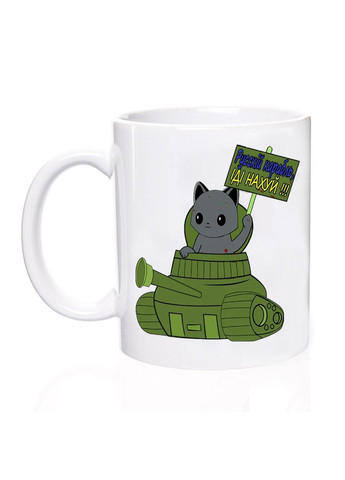 Принт на кружці з кольоровими ручкою та внутрішньою поверхнею. Чорний колір. Керамічний кухоль з патріотичним принтом. Об'єм - 330 мл. Висота 95 мм, діаметр 82 мм. Глянсова якість зображення – яскраві, насичені кольори. Можна мити в посудомийній машині та використовувати в мікрохвильовій печі.