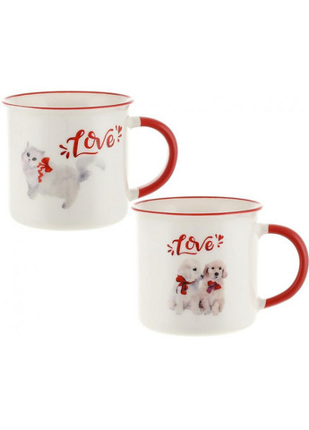 Кухлі порцелянові "Милі Зверята" - в наборі 2 кухлі (чашки) з котенятами і цуценятами в крафтовой картонній упаковці. Повний об'єм 350мл. Класична циліндрична форма з великою зручною ручкою червоного кольору. Можна мити в посудомийній машині і використати в режимі підігрівання в мікрохвильовій печі.