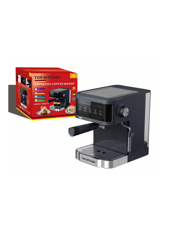 Кофеварка Еспресо зі стимером 1500Вт 15 бар Top Kitchen Tk00216 Кавоварка еспресо Top Kitchen TK00216 потужністю 1500 Вт та тиском 15 бар – це ідеальне рішення для приготування ароматної та насиченої кави. Вона оснащена паровою трубкою для створення повітряної молочної пінки, що дозволяє легко готувати капучіно та латте. Компактний чорний корпус виконаний із термостійкого пластику, що надає пристрою стильного вигляду та забезпечує надійність. Знімний резервуар для води об'ємом 1,5 літра та піддон для крапель спрощують догляд за кавоваркою. Сумісність з меленою кавою робить модель універсальною, а проста система управління підходить як для новачків, так і для досвідчених цінителів кави. Переваги: Високий тиск 15 бар забезпечує оптимальну екстракцію кави, що дозволяє розкрити її аромат та смак. Функція стимера дозволяє готувати різні напої, такі як капучіно, латте та маккіато з ідеальною молочною пінкою. Енергозберігаюча потужність 1500 Вт забезпечує швидке нагрівання води та стабільну температуру під час приготування. Простий у догляді: знімні елементи (резервуар для води та піддон для крапель) легко миються. Компактні розміри: кавоварка не займе багато місця на кухні, ідеально підходить навіть для невеликих приміщень. Сучасний дизайн: стильний чорний корпус гармонійно впишеться у будь-який інтер'єр. Легкість використання: проста система управління підходить як для новачків, так і для досвідчених любителів кави. Характеристики: Тип: Кавоварка Еспресо зі стимером Тиск: 15Bar Потужність: 1500 Вт Підставка для підігріву чашки: так Піноутворювач для молока: так Ручка управління подачі пари: так Знімний резервуар для води об'ємом: 1,8 л Приготування: 1-3 чашки еспресо Знімний піддон: так Комплектація: Кавоварка Еспресо зі стимером Заводська упаковка