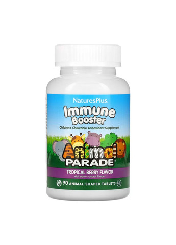 Штрихкод: 097467299788 Антиоксидантна добавка для дітей у формі жувальних таблеток Містить концентрати з цілісних продуктів Без глютену Гіпоалергенний продукт Вегетаріанський продукт Поживна підтримка загального здоров’я Добавка для зміцнення імунітету у дітей Animal Parade Kids Immune Booster у формі жувальних таблеток забезпечують ефективний рівень вітамінів А, С і Е, які сприяють зміцненню імунітету, а також цинк, що посилює захист. Вашим дітям сподобаються веселі жувальні таблетки у формі тварин, які мають неповторний насичений смак тропічних ягід! Унікальна рослинна суміш на основі цільних продуктів, до якої входять зелений чай та листя оливи, забезпечує розширену поживну підтримку здорової імунної системи, а ацидофілін сприяє збалансованому травленню та оптимальному засвоєнню поживних речовин. Рекомендації із застосування Як дієтичну добавку для дітей віком від двох років вживати по дві жувальні таблетки один раз на день. Інші інгредієнти Фруктоза, натуральні ароматизатори, мікрокристалічна целюлоза, стеаринова кислота, стеарат магнію, лимонна кислота, натуральний барвник (буряк), аскорбат натрію, мальтодекстрин, стевія та діоксид кремнію. Без штучних барвників та консервантів. Не містить поширених алергенів, дріжджів, пшениці, сої та молока.