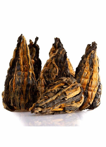 На три речі можна дивитися вічно: як горить вогонь, тече вода і заварюється зв’язаний чай. Золота пагода особлива. Вона створюється із «Золотих голок» і чорного чаю, зібраного зі знаменитих дерев Юньнані. Китайські фермери смажать чайне листя у воку над багаттям. Потім формують з нього пагоди, обмотуючи навколо качана кукурудзи. Сто відсотків ручної роботи.