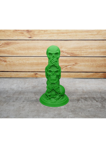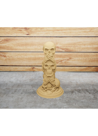 Статуетка з черепами "нічого не бачу, нічого не чую, нічого не скажу" - це варіант популярної японської статуетки "Три мудреця", але замість обезьян використовуються черепи. Кожен череп, як і в оригінальній статуетці, символізує один з принципів: не бачити зло, не чути зло та не говорити зло. Ця статуетка, може використовуватися як декоративний елемент або оберіг, який нагадує про важливість моральних принципів. Виготовлена з екологічно чистого пластику PLA. PLA пластик (полилактид) – є полімером молочної кислоти і створюється з натуральних природних матеріалів: крохмаль, цукрової тростини, целюлози, кукурудзи.Безпечний, не несе загрози здоровю, саме тому його можна використовувати для виробництва дитячих товарів, одноразового посуду, побутових виробів і т. п.