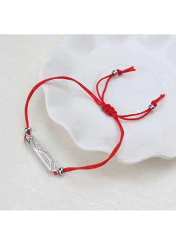 Браслет, червона нитка, оберіг на руку виготовлений із синтетичної ниточки. Прикрашений декором, який виготовлений із ювелірного сплаву і прикрашений білими круглими і прямокутними камінцями. Регулююча застібка.