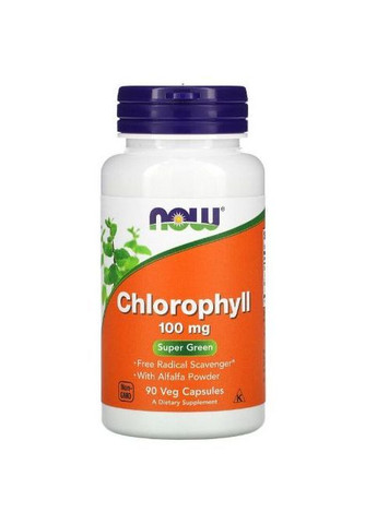 Засіб для усунення вільних радикалів Містить порошок люцерни Харчова добавка Без ГМО Хлорофіл-це зелений пігмент, природно виробляється рослинами і водоростями, який надає їм їх характерний зелений колір. Хлорофіл є критичним для фотосинтезу, процесу, під час якого сонячне світло перетворюється в хімічну енергію. Хлорофіл може діяти як нейтралізатор вільних радикалів, може сприяти процесам детоксикації в організмі і традиційно використовується як внутрішній дезодоратор. Цей розчинний у воді екстракт має форму натрій-мідь-хлорофіліну. Рекомендації по Застосуванню Приймайте по 1 капсулі 1-3 рази на день. Інші Інгредієнти Целюлоза (капсула) і стеарат магнію (рослинне джерело). Не виробляється з додаванням пшениці, глютену, сої, молока, яєць, риби, молюсків або інгредієнтів горіхового горіха. Виробляється в установці GMP, яка обробляє інші інгредієнти, що містять ці алергени. У цьому продукті може спостерігатися природна зміна кольору. Попередження Після розтину зберігати в сухому прохолодному місці. Увага: тільки для дорослих. У період вагітності, лактації, прийому ліків (в цьому продукті міститься люцерна) або при наявності будь-яких захворювань проконсультуйтеся з лікарем. Зберігати в місцях, недоступних для дітей. При пероральному прийомі хлорофіл може спровокувати діарею або сечу або стілець зеленого кольору. Пакетик з вологопоглиначем в їжу не споживати. Зберігати у флаконі. Авторизований партнер NOW