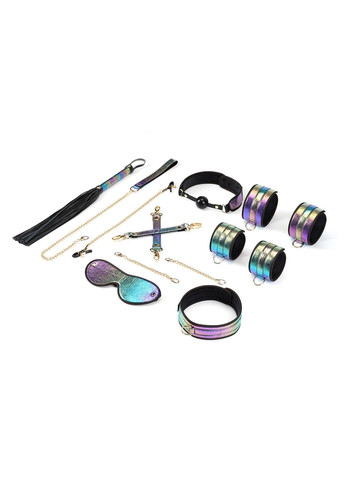Якщо ви тільки починаєте свій шлях у захопливий світ БДСМ-розваг або просто хочете додати пікантності у відносини, рекомендуємо купити БДСМ-набір Liebe Seele Vivid. Це чудовий сет із 8 аксесуарів, який ідеально підійде для початківців та містить усе, що потрібно для запальної гри. У наборі є наручники, поножі, нашийник із повідцем, хрестовина, кляп, флогер, затискачі для сосків і маска на очі. Усе, що потрібно, легко регулюється за обсягом, а яскраве голографічне оформлення додає вогника! Додайте барв у свою інтимну близькість із БДСМ-набором Liebe Seele Vivid! У ньому є все, що потрібно для захопливих ігор із домінуванням та підкоренням, покаранням та задоволенням, фіксацією та повною свободою дій. Шикарний голографічний ефект ідеально поєднується із чорними деталями та металевою фурнітурою. Дайте волю своїй фантазії із цим неймовірним набором! У наборі є: Наручники на липучці із з’єднувальним ланцюжком. Наручники з м’якою вставкою на оксамитовій основі будуть комфортно розміщуватись на руках, а широка липучка дає змогу регулювати їх за обсягом. Ланцюжок кріпиться на карабінах, так що ви легко можете зафіксувати руки на будь-якому об’єкті (ліжку, стільці тощо), а також з’єднати їх із ногами, нашийником або повідцем. Загальна довжина наручників: 24,5 см, ширина 6 см. Довжина ланцюжка 16 см. Поножі на липучці зі з’єднувальним ланцюжком. Широкі та м’які, з оксамитовою підкладкою, ці поножі допоможуть закріпити ноги в потрібній позиції або з’єднати їх із руками. Легко регулюються за обсягом за допомогою надійної липучки. Ланцюжок знімний, на карабінах. Загальна довжина поножів: 29,5 см, ширина 6 см. Довжина ланцюжка: 18 см. Нашийник із повідцем. Нашийник з оксамитовою основою та на широкій липучці, що забезпечує зручну посадку. Оснащений кільцем для повідця або кріплення рук. Повідець-ланцюжок доповнений широкою петлею для зручного утримання. Загальна довжина нашийника: 44 см (вільне регулювання за об’ємом), ширина 4,2 см. Довжина ланцюжка: 73 см. Хрестовина із чотирма карабінами дає змогу скріпити між собою руки та ноги або зафіксувати свого партнера або партнерку в будь-якій позі, яку підкаже ваша фантазія. Хрестовина гнучка та зручна. Розміри: 15×15 см. Маска на очі на широкій резинці, з оксамитовою підкладкою. Маска гнучка, дуже добре прилягає до обличчя і забезпечує повну депривацію зору. Жодних підглядань, тільки фантастичні відчуття, які чудово загостряться від відсутності візуальної картинки! Широка м’яка резинка комфортно відчувається на голові. Розміри маски: 21×7,5 см. Кляп-кулька невеликого діаметра (3,3 см). Кріпиться за допомогою надійної липучки та вільно регулюється за обсягом. Задня частина широка та м’яка, на оксамитовій основі. Кріплення кульки гнучке, щоб зручно розмістити її в роті. Загальна довжина: 52 см, ширина 4 см. Флогер зі зручним обплетеним руків’ям та петлею для гарного захоплення. Така конструкція забезпечує впевнений замах і сильний удар. Прекрасно підійде для приємних пестощів, збуджувальних ляпанців та чутливих покарань! Загальна довжина: 50 см, довжина ручки 15,6 см. Затискачі на ланцюжку для сосків. Затискачі загвинчуються, щоб відрегулювати силу стискання. Силіконові накладки дають змогу не пошкодити сосок навіть за дуже сильного впливу! Ланцюжок має не просто шикарний вигляд, але й дає можливість додатково пограти з відчуттями