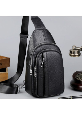 Невелика чоловіча сумка через плече без клапана українського бренду TARWA. Сумка представлена ​​в чорному кольорі, виготовлена ​​з натуральної шкіри. Сумка містить у собі: одне основне відділення (застібається блискавкою), усередині якого є врізна кишеня (на блискавці) Зовні є велика накладна кишеня, з тильного боку сумки врізна кишеня, ремінь через плече, що регулюється по довжині, фурнітура сумки металева (кольори-срібло).