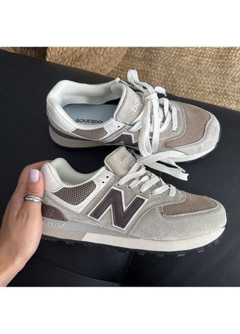 Верх кросівок New Balance 574 виготовлений з високоякісних матеріалів. Це забезпечує міцність, дихаючі властивості та комфорт під час носіння. Вони також мають впізнаваний дизайн з характерними логотипами та смужками New Balance.