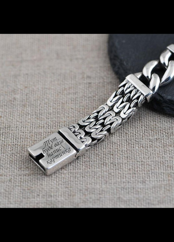 Обмін\повернення протягом 14 днівЧоловічий браслет зі срібла 925 проби, вага — 78 г для 22см (інші розміри під замовлення)Стильне королівське плетіння шириною 16 ммМожливість індивідуального гравіювання — ідеально для подарункаМасивний, солідний аксесуар для справжнього чоловікаМасивний чоловічий срібний браслет 78 г із гравіюванням — це статусна прикраса, яка поєднує брутальність, елегантність і індивідуальність. Виготовлений із срібла 925 проби, цей браслет стане не лише стильним доповненням образу, а й символом сили, стабільності та впевненості.Браслет має довжину 22 см і товщину 6 мм, що робить його комфортним для щоденного носіння, але при цьому він залишається масивним і помітним аксесуаром. Плетіння "королівське" — це класика, що завжди в моді. Воно створює відчуття потужності та престижу, а щільна текстура забезпечує довговічність та стійкість до зношування.Однією з головних переваг є можливість індивідуального гравіювання. Це може бути ім’я, пам’ятна дата, мотиваційна фраза чи картинка — все, що зробить браслет справді вашим. Персоналізовані прикраси завжди цінуються вище, адже вони несуть особисту історію.