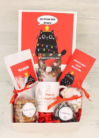 До складу входить: Коробка 20*20*9см Чай чорний - 25г Чашка Драже Millenium boom choc арахіс у какао порошку - 90г Драже Millenium boom choc crunch кульки у молочному шоколаді - 80г Шоколад very pery - 85г Печиво американо - 6шт Листівка 10х10см Компанія залишає за собою право замінювати позиції, за відсутності заявлених у складі, на аналогічні чи дорожчі, не змінюючи ціни самого набору.