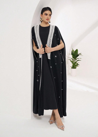 Жіноча сукня абайя Al Najma, чорного кольору. Ця елегантна абайя вільного крою виконана у стилі колор-блок. Круглий виріз горловини та рукави-накидки. Без підкладки не тягнеться. Тільки ручне прання. Підходить для релігійних свят.