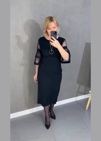 Тканина: костюмка Кольор: чорний / евросітка Розмір: 42-44,46-48,50-52,54-56 Елегантна жіноча сукня довжини міді, виконана у вільному крої, що дарує комфорт і невимушеність. Родзинкою моделі є напівпрозорі рукави із сіточки довжиною до ліктя, які додають образу легкості та витонченості. Ідеально підходить як для повсякденних прогулянок, так і для особливих випадків, коли хочеться виглядати стильно й жіночно.