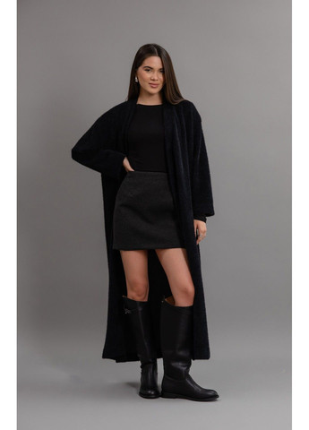 Довгий кардиган чорного відтінку з м’якої фактурної пряжі. Модель вільного крою з поясом на талії, який дозволяє регулювати силует. Має зручну довжину максі, що дарує відчуття тепла й комфорту. Лаконічний дизайн без застібок робить кардиган універсальним варіантом для повсякденних образів і вечірніх виходів. Ідеально поєднується як із сукнями, так і з джинсами чи класичними брюками.