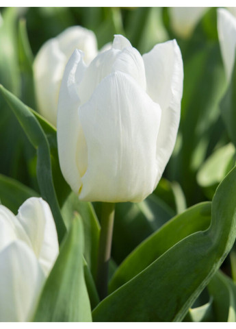 Тріумф тюльпан White Prince - втілення чистоти й спокою. Цей сорт відомий своїми молочно-білими пелюстками з делікатним перламутровим блиском. Квітка велика, келихоподібна, ідеальної форми, часто використовується для оформлення урочистих подій, весіль або контрастних весняних клумб. Рослина виростає до 25-30 см заввишки що робить її ідеальною для переднього плану композицій або посадки в горщиках. Цвіте рано — з кінця березня до початку квітня. Незважаючи на раннє цвітіння, квіти добре тримаються, особливо за помірної температури. Це безсумнівно дуже популярний сорт серед ландшафтних дизайнерів, адже надає композиціям легкості та світла. Він також чудово пасує до темних сортів — таких як Queen of Night чи Paul Scherer — створюючи виразний і стильний контраст. Тріумф тюльпани - улюблениці всіх садівників та флористів. Кожен їх сорт буквально чарує і створює дуже елегантну та насичену атмосферу. А ще ці красені, як правило, низькорослі і виростають до 50 см заввишки - вони формують дуже міцні стебла, а тому є стійкими до вітру, дощів та інших погодних факторів. Ну просто ідеальний вибір - як для досвідчених аграріїв, так і для тих, хто лише починає займатися квітникарством. Зараз представлено понад 1000 сортів цих тюльпанів, тож абсолютно кожен може знайти те, що до вподоби саме йому. Ідеальні умови для вирощування: висаджувати цибулини тюльпанів найкраще восени, орієнтовно це вересень - початок жовтня. Глибина посадки — приблизно 15–20 см (від основи цибулини), а для довговічних сортів — до 30 см. Відстань між рослинами — 10–15 см. У кожну лунку варто додати жменю компосту або спеціального добрива для цибулин — це допоможе молодим корінцям швидше прижитися. Садіть верхівкою догори, а якщо не впевнені — боком: природа сама розбереться. Тюльпани люблять сонце та легкий, добре дренований ґрунт. Найгірше, що може з ними статися — це волога ділянка: там цибулини швидко загнивають. Тому обирайте місце, де не застоюється вода, і де рослини отримають щонайменше 6 годин сонця на день. Після цвітіння не поспішайте обрізати листя — саме воно накопичує поживні речовини для нових цибулин. Видаліть лише квітконоси, щоб рослина не витрачала сили на насіння. Листя має дозріти протягом 6 тижнів. Підживлюйте навесні або восени добривом із низьким вмістом азоту, компостом або перепрілим гноєм — тюльпани віддячать за це щедрим цвітінням.