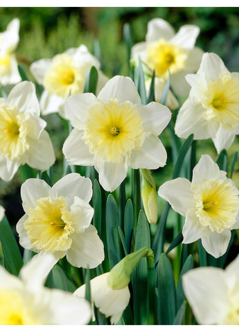 Махровий нарцис Suade Double - це така неймовірна краса, що важко відвести від неї погляд! Варто лише один раз посадити цих красенів на своїй квітковій ділянці - і ви вже не зможете зупинитись, а будете прагнути висаджувати їх знову і знову. А компліментів скільки отримаєте від відвідувачів… годі й уявити! Його зовнішні пелюстки — кремово-жовті, а центр наповнений хвилястими, густими пелюстками насиченішого жовтого або абрикосового тону. Така багатошаровість виглядає справді дуже цікаво та особливо. Виростає заввишки до 35–40 см, квітка дуже велика, близько 9–10 см. в діаметрі. Цвіте в середньопізній період весни, а тому дуже красиво виглядає в компанії з екзотичними папуговими чи зеленоцвітними тюльпанами. Добре росте як в сонячних, так і в напівзатінених місцях, не боїться дощів і прохолоди. Ідеально підходить для клумб, рабаток і композицій у природному стилі. Його варто обирати тим, хто хоче щось нестандартне, але не надто яскраве. Спробуйте посадити цей сорт бодай цього року - і переконайтеся в тому, що такої краси ви ще точно ніде не бачили! Махрові нарциси - це найпопулярніші та найпрекрасніші сорти нарцисів, що нагадують мініатюрні трояндочки та просто вражають своєю декоративністю та розкішним королівським зовнішнім виглядом! Квіти можуть бути найрізноманітніших відтінків - жовті, кремові, червоні, помаранчеві - але так чи інакше вони просто неймовірно виглядають на фоні темно-зеленого видовженого листя. Розміри теж вражають, а окремі екземпляри можуть мати навіть 15 см в діаметрі. Тому якщо хочеться чогось нестандартного та цікавого - махрові нарциси ваш вибір! Ідеальні умови для вирощування: вирощування нарцисів, як зрештою й інших цибулькових весняноквітучих рослин, не потребує особливих зусиль, але деякі фактори все ж краще врахувати. По-перше, ми говоримо про вибір місця, ґрунту, правильна посадка та догляд після посадки. Пам’ятайте, що нарциси люблять сонячні ділянки, але можуть прекрасно рости і в умовах напівтіні. Ґрунт повинен бути вологим, суглинним, з достатньою кількістю поживних речовин. Не рекомендується садити нарциси в надто кислий ґрунт, бажано нейтральний або слаболужний. А перед посадкою його бажано підживити компостом або перегноєм, а також додати фосфорні та калійні добрива. Найкращий час для посадки нарцисів - осінь, орієнтовно це вересень-жовтень, але зважайте на погодні умови у своєму регіоні. Глибина посадки залежить від розміру цибулин, зазвичай це в 2-3 рази більше за висоту цибулини. На важких ґрунтах глибину посадки можна зменшити, а на легких - збільшити. Після посадки ґрунт можна замульчувати торфом або листям, щоб зберегти вологу. Особливості догляду після посадки дуже прості. Передовсім пам'ятайте, що нарциси вологолюбні рослини, але не переносять застою води. Поливайте їх регулярно, особливо під час активного росту та цвітіння, але стежте, щоб ґрунт не був перезволожений. Вносьте комплексні мінеральні добрива навесні, під час бутонізації та після цвітіння. А також не забувайте щоразу обрізати відсохлі квітконоси та листя, аби рослинка змогла накопичити поживні речовини для наступного сезону. За правильного догляду, нарциси зможуть тішити вас на одному місці понад 8 років!