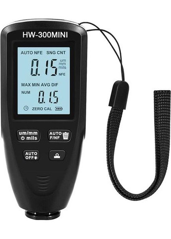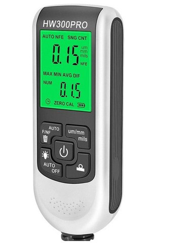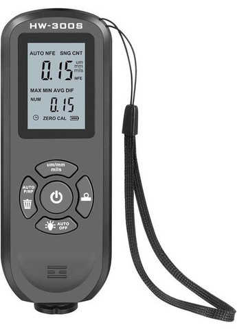 Товщиноміри покриття фарби використовуються для вимірювання товщини металевих покриттів та покриттів, таких як фарба/емаль на сталі, фарба та анодовані покриття на алюмінію/міді. Автоматичне визначення властивостей субстрату. Цей прилад використовується для вимірювання, що не руйнує, товщини покриттів і фарб. Це необхідне обладнання для обробки поверхні матеріалів, яке широко використовується у виробництві, металообробній промисловості, хімічній промисловості, інспекції товарів та інших областях, а також може стабільно працювати в лабораторіях, майстернях та на відкритому повітрі. Він може автоматично розрахувати товщину покриття: 1. Товщиномір використовується для вимірювання товщини металевого покриття та пластин з покриттям, таких як фарба/емаль/хром на сталі, фарба та анодоване покриття на алюмінію/міді. Працює лише по немагнітних поверхнях. 2. Діапазон виміру 0 - 2000 мкм. 3. Прилад використовує вбудований прецизійний датчик та використовує принцип електромагнітної індукції та ефекту вихрових струмів для автоматичного визначення властивостей підкладки. 4. Вимірювач призначений для неруйнівного вимірювання товщини покриття та фарби. Це необхідно для обробки поверхні матеріалів. Він широко використовується у виробництві, металообробці, хімічній та поля огляду товару. Його також можна використовувати в лабораторіях, майстернях та на відкритому повітрі. Технічні характеристики:Зонд: зонд F, зонд NМагнітна індукція: принцип вимірювання (F), ефект вихрових струмів (N)Діапазон виміру: 0-2000 мкмТочність: ± (3 % + 1 мкм)Дозвіл : 0 um - 99.9 um (0.1 um) 100 um - 999 um (1 um) > 1000 um (0.01 мм)Регулювання нуля: підтримкаСтатистика: середня, мінімум, максимум, кількістьОдиниця: мм, милМінімальна опукла дуга: 5 ммМінімальна увігнута дуга: 25 ммМінімальна площа вимірювання: 20 мм в діаметріМінімальна товщина підкладки: 0.2 мм 0.05 ммМаксимальна швидкість вимірювання: 2 показання за секундуДжерело живлення: 2 батареї ААА 1.5 (не входять в комплект)Робоче середовище: температура 0 - 50 ℃, відносна вологість 20 - 90 % (без конденсації)Середовище обслуговування: температура: -10 - 60 ℃ , 20 - 90 % відносної вологості (без конденсації)Розмір / вага / матеріал: 113 мм х 53 мм х 24 мм / 80 г / АБС У комплекті: товщиномір, калібрувальні елементи (0.05 мм, 0.1 мм, 0.25 мм, 0.5 мм, 1 мм, 2 мм)