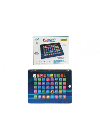 Планшет - інтерактивний багатофункціональний дитячий гаджет, який допоможе весело і цікаво вивчити не тільки алфавіт, але ще багато корисного, тому що має цілих 8 режимів: Режим навчання букв та цифр. Вивчення звуків та кольорів. Вікторина. 33 віршики, 10 про цифри. Знайди слово та цифру. Проста арифметика. 42 загадки. 3 пісні. Кнопочки злегка об'ємні – чутливі та легкі до натискання. Є можливість регулювання гучності. Озвучено українською мовою. Живлення: 3 батарейки тип ААА (у комплекті не входять).