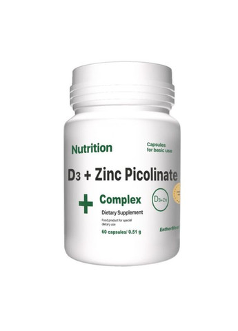 Вітамінно-мінеральний комплекс складається з вітамінів D3, C і цинку. Комплекс спеціально розроблений з метою зміцнити імунітет, заповнити дефіцит вітамінів D3 і C, а також нормалізувати роботу шлунково-кишкового тракту і ендокринної системи. Вітамін D3 (кальциферол) D3 - жиророзчинний вітамін з дуже широким спектром впливу на організм. Специфіка його метаболізму полягає в тому, що свою основну функцію – кальцієво-фосфорний баланс – він реалізує при засвоєнні в тонкому кишечнику. Останній факт говорить про те, що приймати його бажано разом з їжею. В організмі вітамін D3 впливає на: Щільність кісткової тканини Поліпшення стану шкіри Роботу нирок Серцево-судинну систему Нормалізацію роботи кишечника Роботу нервової системи (антидепресивний вплив) Крім усього вищевказаного, вітамін D3 має протизапальний ефект. При нестачі вітаміну D3 в організмі може спостерігатися: Погіршення стану шкіри, нігтів, волосся Ламкість кісток Виникнення онкологічних захворювання Зниження імунітету Також може дефіцит вітаміну D підвищує ризик виникнення ожиріння і виникнення алергічних реакцій. Шляхів надходження D3 в організм всього 2: Прийом добавок вітаміну D (харчовий шлях) Активація вітаміну D в шкірі під дією сонячних променів Прийом добавок вітаміну D3 в наших широтах доцільний в період з жовтня по квітень – період низької сонячної активності. Цинк Серед мінералів, цинк є найбільш значущим для роботи імунної системи. Стимулюючи активацію Т-лімфоцитів і синтез РНК, впливає на рівень вироблення інтерферонів (антибактеріальні білки). Цинк потрібен організму для: Підвищення синтезу колагену Зниження запальних реакцій (подразнень) шкіри Прискорення загоєння ран Підвищення рівня тестостерону (у чоловіків) Збагачення раціону при хворобах сечостатевої системи Заповнення дефіциту цинку можливе тільки через їжу або шляхом прийому мінеральних добавок. Піколінат цинку - одна з найбільш добре засвоюваних форм цього мінералу. Вітамін С Потужний антиоксидант. Найбільш вивчений і доступний вітамін. Впливає на рівень синтезу інтерферонів – зміцнює імунітет. Покращує обмін речовин, прискорює відновлення після фізичних навантажень і респіраторних захворювань. Ефективно використовується в спорті для підвищення силових характеристик, витривалості, набору м'язової маси. Кількість капсул в упаковці: 60 шт. Вміст вітамінів і мінералів в 1 капсулі: D3 - 1000 МО (10 мг) Цинк піколінат - 12 мг Аскорбінова кислота ( вітамін С) - 400 мг Склад: Аскорбінова кислота (вітамін С) Вітамін D3 сухий Піколінат цинку Діоксид кремнію Харчова цінність 1 капсули: Білків - 0,1 г Жирів - 0,0 г Вуглеводів - 0,1 г Енергетична цінність (калорійність) 1 капсули: 0,8 кКал( 3,4 кДж) Без ГМО Рекомендується вживати як додаткове джерело цинку, для збагачення раціону харчування в програмах, спрямованих на підвищення імунітету, в комплексному лікуванні захворювань шкіри, сечовивідної системи, при дефіциті вітаміну D3, при гіповітамінозі, в період зниженої сонячної активності. Перед вживанням рекомендована консультація лікаря-дієтолога. Не є лікарським препаратом. Спосіб уживання: Вживати по 1 капсулі в день разом з прийомом їжі. Запивати великою кількістю негазованої води.