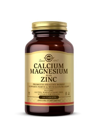 Вміст елементів у 1й порції: 3 таблетки Кальцій (карбонат кальцію, глюконат кальцію, цитрат кальцію) 1000 мг Магній (оксид магнію, глюконат магнію, цитрат магнію) 400 мг Цинк (глюконат) цинку) 15 мг Інгредієнти мікрокристалічна целюлоза, рослинна целюлоза, лимонна кислота, рослинний магнію стеарат, рослинний гліцерин, діоксид титану (барвник), рослинна стеа